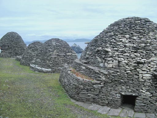 The path opened into a grassy shoulder, pockmarked with holes, each a burrow for a family of puffins. We stopped to sit amongst them, revelling in their busy-ness and beauty. After a rest, we followed the steps up leading high up into pinnacles of rock, eventually reaching the beehive houses that Skellig is famous for (and where Luke Skywalker is eventually found). Somehow I kept going. I wasn’t in pain, I had the energy to take it all in, to know I was in one of the remarkable places of the world, a place of prayer and seclusion, of life lived at the very edge of humanity, where survival is a daily achievement